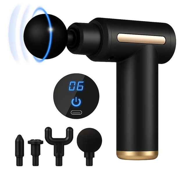 The Mini & Portable Body Massager Handheld Percussion Massager combines advanced percussion technology with a sleek, compact design to deliver professional-grade muscle relief wherever you are. Its powerful percussive action penetrates deep into muscle tissues to effectively reduce stiffness, alleviate soreness, and promote faster recovery after physical activity or long periods of tension. The ergonomic, lightweight build ensures effortless handling and precise targeting of areas like the back, neck, legs, and other hard-to-reach spots. Perfectly sized for travel or daily use, this massager is easy to carry and operate, providing convenient access to therapeutic relief anytime. Its versatile functionality allows you to customize the intensity and focus, tailoring each session to your specific needs for enhanced relaxation and improved circulation. An essential tool for maintaining muscle health and comfort, it supports an active lifestyle without compromise.